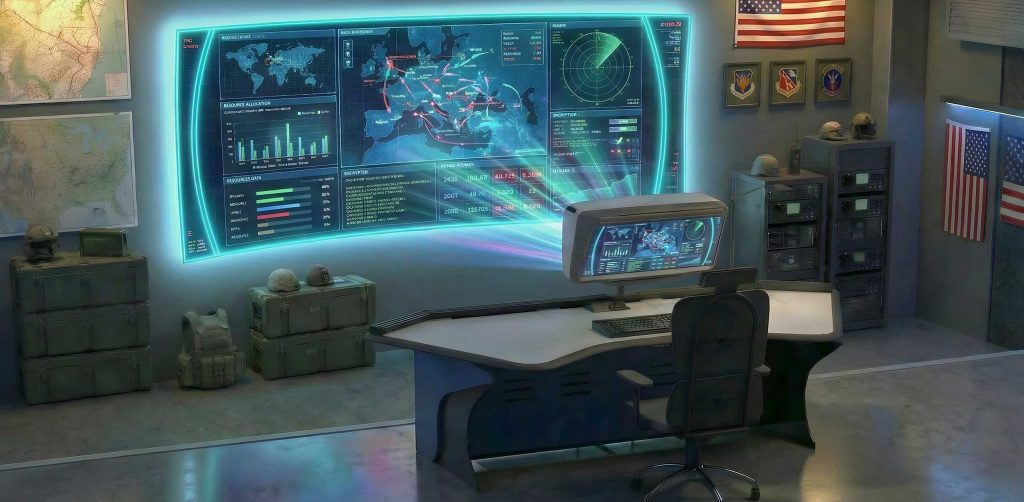 — Вже сьогоднішні командні центри фактично перетворилися на певні аналоги великих кінотеатрів. Тобто центр, де велика кількість широкоформатних моніторів та потужних серверів, дояких стікаються тисячі гігабайт інформації в реальному часі, і вони на ці дані в реальному часі відображають. Це дозволяє приймати ефективні та підготовлені рішення або координувати дії військових угруповань.
