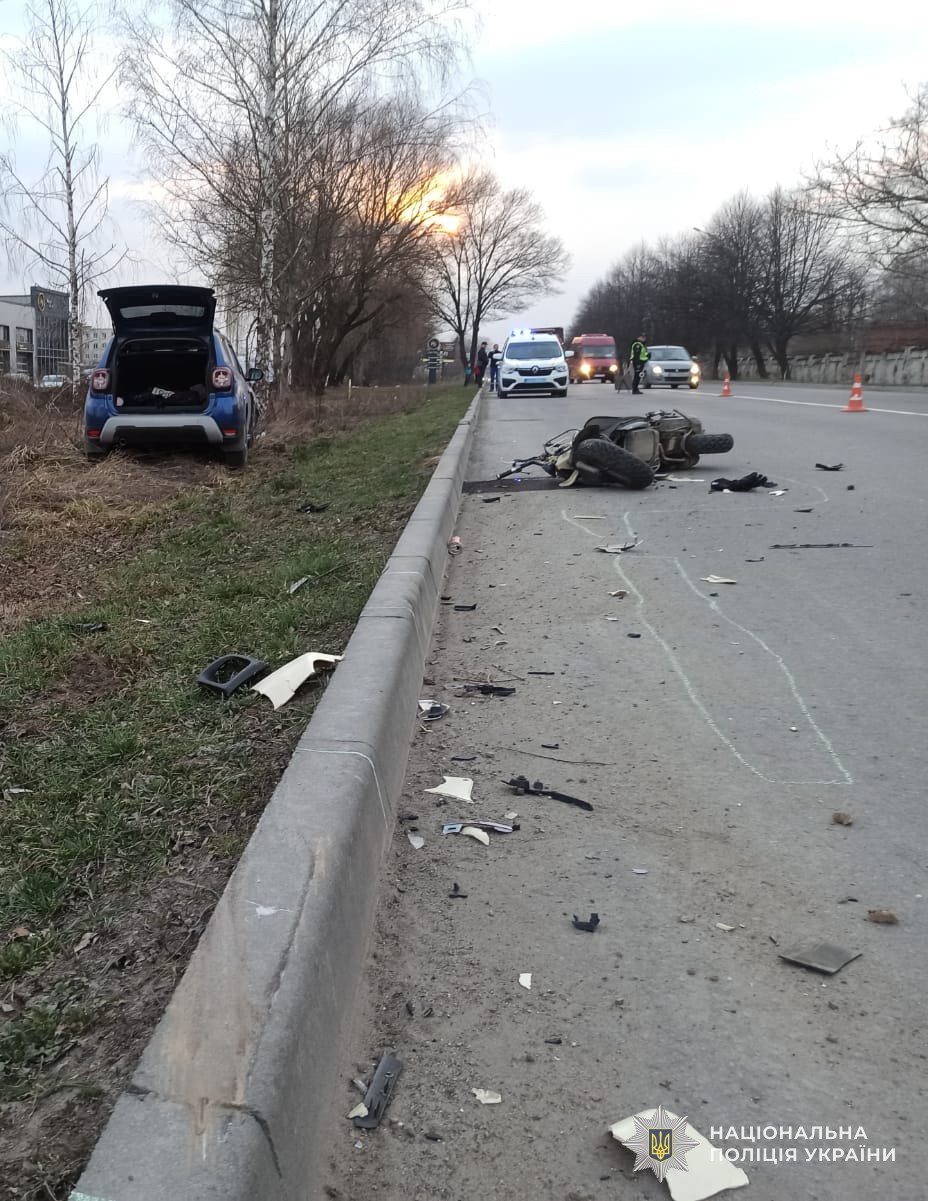 Внаслідок ДТП мотоцикліст отримав тілесні ушкодження та був госпіталізований.
