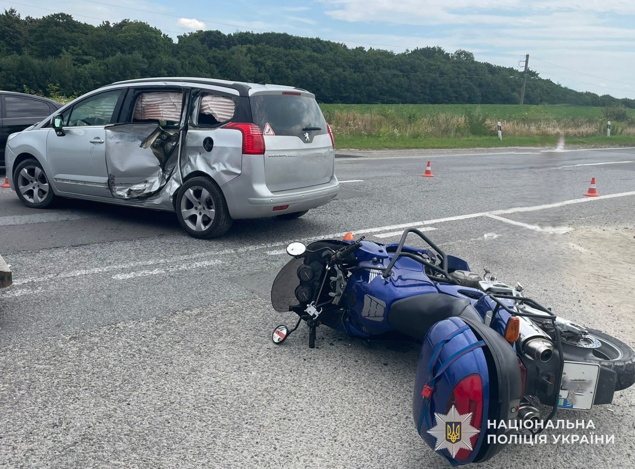 Внаслідок ДТП водій мотоцикла та його пасажир, 27-річний мешканець Львова, отримали тілесні ушкодження та були доставлені до медичного закладу.