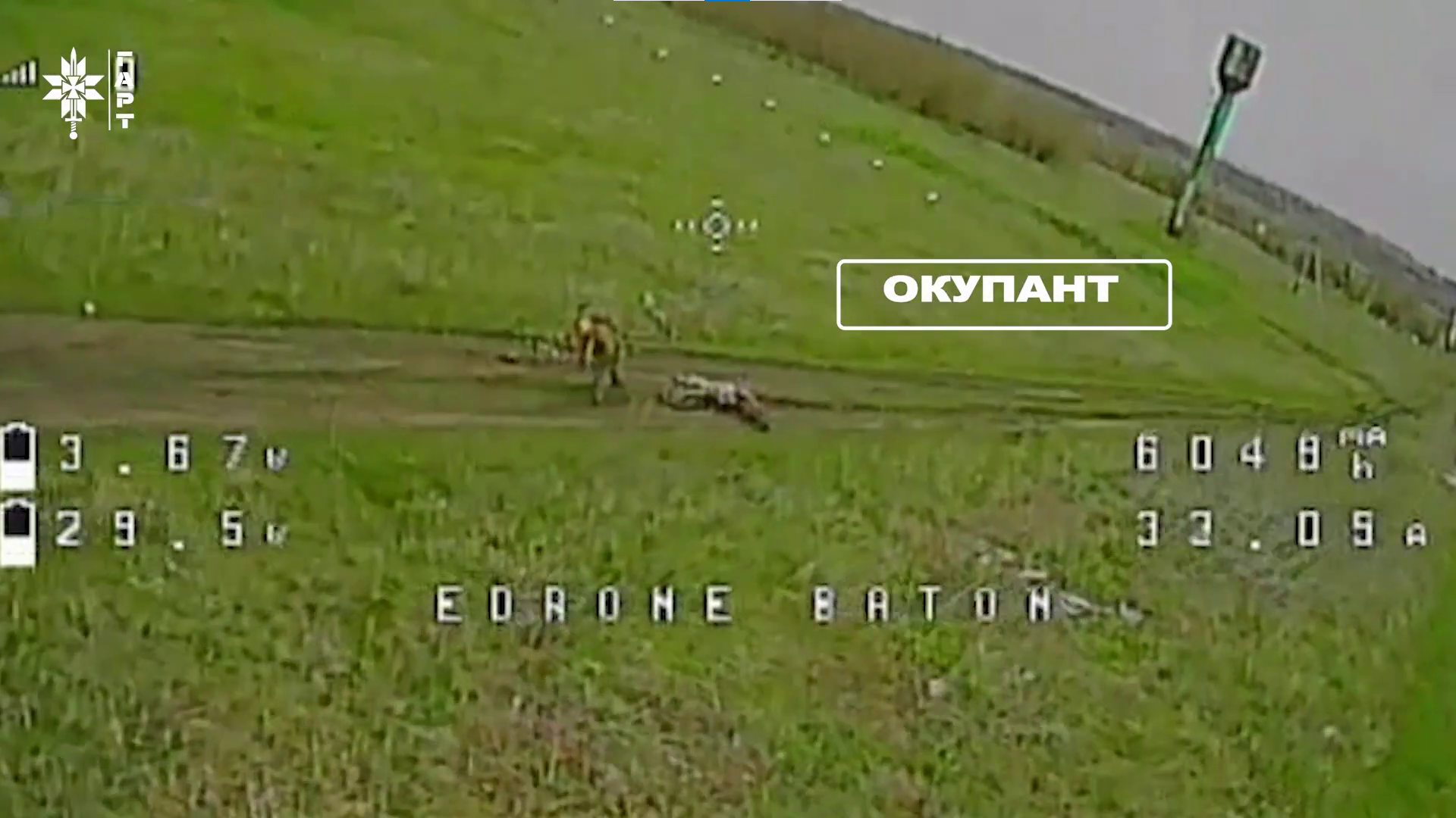 Мотоцикл лежить, окупанти біжить, але не надовго. Скрін з відео бригади “Гарт”