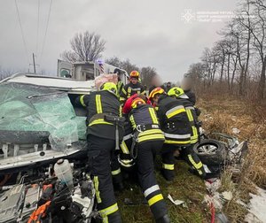 У легковику водій опинився заблокованим у деформованому салоні. Спільно з вогнеборцями 5-ї державної пожежно-рятувальної частини фахівці Мобільного центру провели розвідку, знеструмили транспортні засоби. За допомогою гідравлічного інструменту рятувальники деблокували водія автомобіля Kia та передали його медикам.
