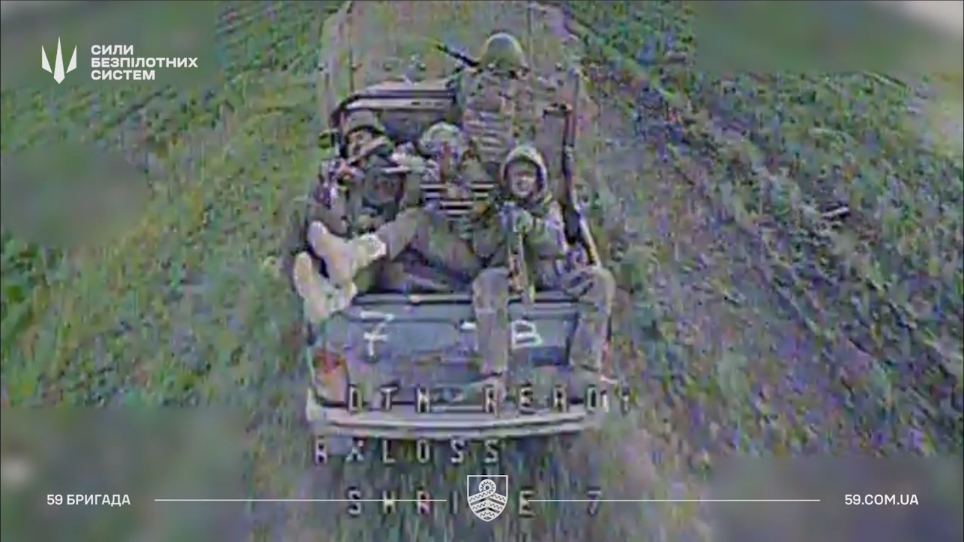 М’ясорубка. Наш дрон залетів у кузов пікапа, повний російських штурмовиків. Скрін з відео 59 бригади