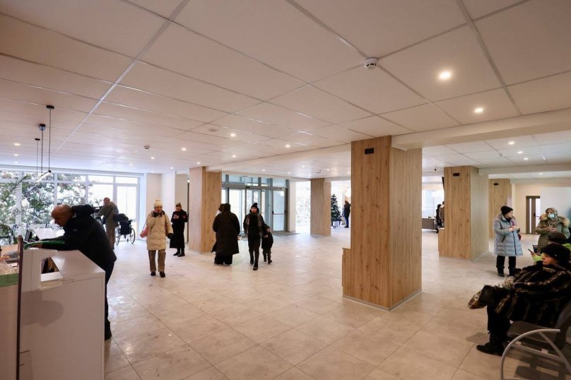 На рецепції облаштували інклюзивну стійку з пониженою частиною та простором для ніг — для комфортного обслуговування людей у кріслах колісних та пацієнтів з інвалідністю І–ІІ груп. У холі також доступний спеціальний допоміжний інвентар для тих, хто його потребує. Загальна площа оновлених приміщень холу і першого поверху — понад 300 квадратних метрів. Ремонт вартістю 8 млн грн робили близько року.