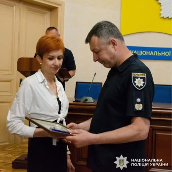 Нагороду дружині загиблого правоохоронця, Мар’яні Ривак, вручив очільник поліції Львівщини Олександр Шляховський.