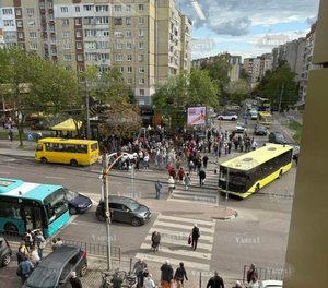 У ДТП зіткнулися два авто, Volkswagen і Kia, та автобус марки “Богдан”, вналідок удару обидва авто опинилися на тротуарі. Крім цього, в автомобіля Volkswagen відлетіло колесо.